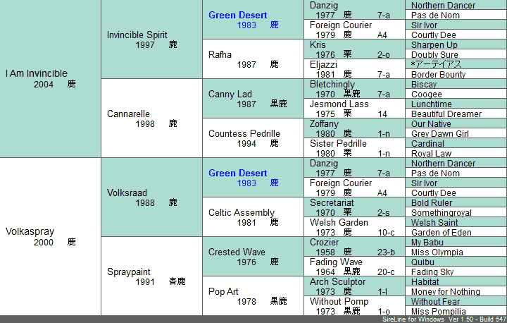 | 5代クロス | 父系×母系 Green Desert 3×3父系内のみ なし母系内のみ なし | |